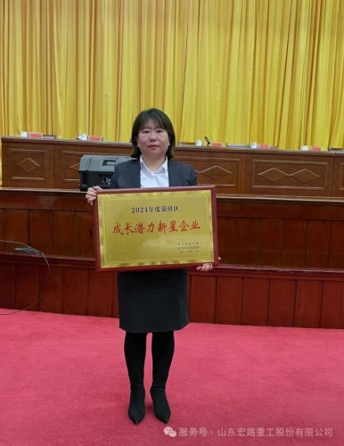 山東宏路重工股份有限公司榮獲了“2024年度淄川區(qū)成長潛力新星企業(yè)”的榮譽!宏路股份董事會秘書王雪芳代表公司上臺領(lǐng)獎。